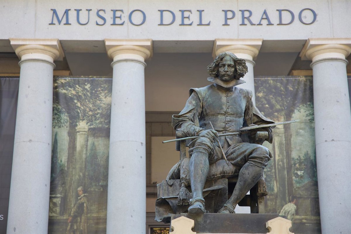 El Ayuntamiento de Madrid inicia los trabajos de restauración del monumento a Diego Velázquez situado en el paseo del Prado, frente a la entrada principal del Museo del Prado.