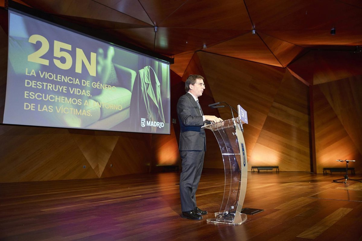 El alcalde de Madrid, José Luis Martínez-Almeida, preside el acto institucional con el que el Ayuntamiento de Madrid conmemora el Día Internacional de la Eliminación de la Violencia contra la Mujer - Jesús Hellín - Europa Press