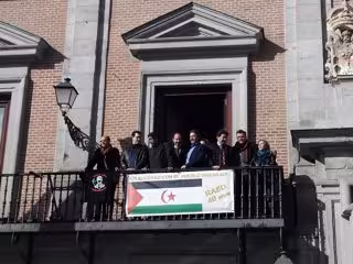 El Ayuntamiento de Madrid ha colgado de un balcón de la Casa de la Villa una pancarta en "solidaridad" con el pueblo saharaui, en el 40º aniversario de la proclamación de la República Saharaui Democrática.