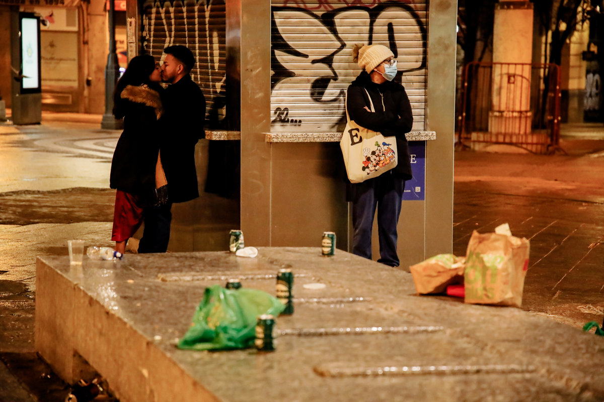 Algunas personas esperan en la calle hasta poder regresar a sus casas tras disfrutar de las fiestas de Nochevieja, a 1 de enero de 2023, en Madrid (España). - Carlos Luján - Europa Press