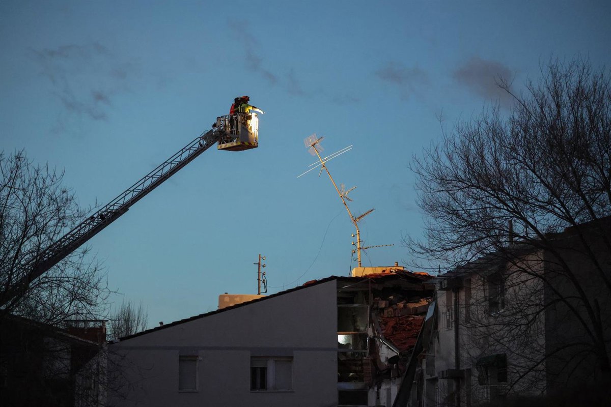 Agentes de los Servicios de Emergencias trabajan en el lugar de una explosión de gas registrada en un edificio en obras situado en la calle Azcoitia, en el distrito madrileño de Carabanchel - Alejandro Martínez Vélez - Europa Press