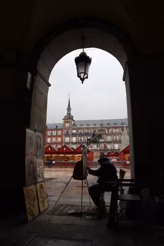Archivo - Un pintor pinta un cuadro en uno de los accesos a la Plaza Mayor - Marta Fernández Jara - Europa Press - Archivo