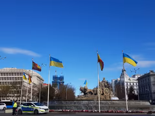 La fuente de Cibeles luce banderas de Ucrania junto a las de España - EUROPA PRESS