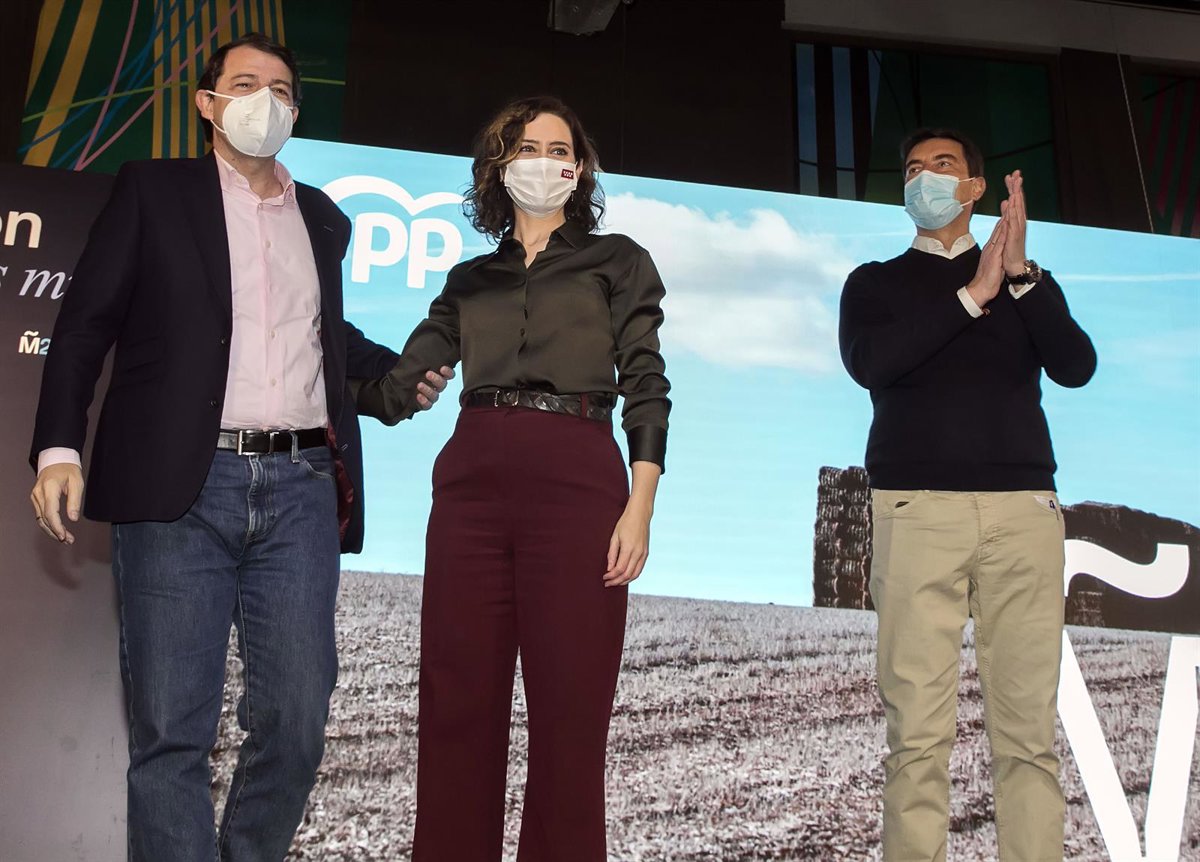 La presidenta de la Comunidad de Madrid, Isabel Díaz Ayuso, ha recomendado al candidato del PP a la Junta de Castilla y León, Alfonso Fernández Mañueco, que busque alianzas con aquellos partidos políticos que se mueven por los mismos valores.