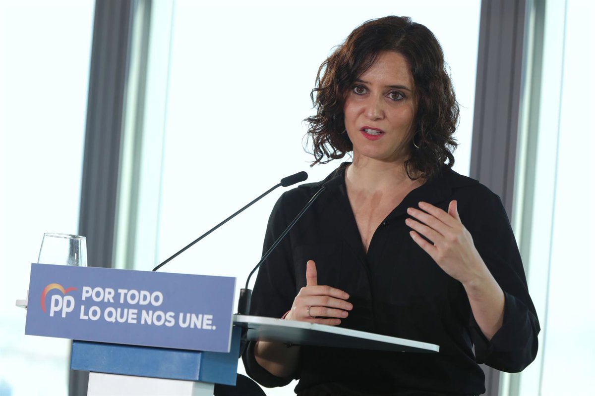 La presidenta de la Comunidad de Madrid, Isabel Díaz Ayuso, ha acusado este martes al presidente del Gobierno, Pedro Sánchez,de "derrocar" al Gobierno del PP en la moción de censura de 2018,para sumir a España en "la destrucción de 7.000 empleos diarios".