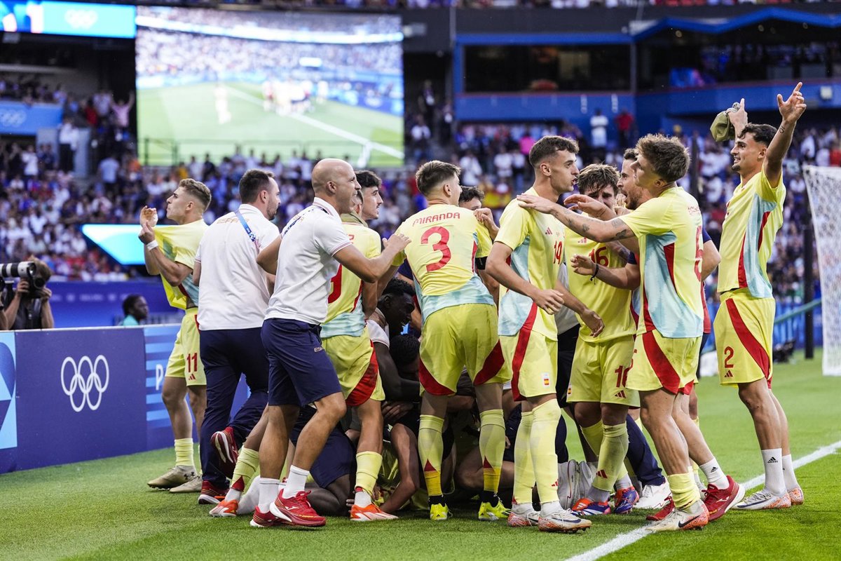 La selección española masculina de fútbol ha conquistado este viernes la medalla de oro en los Juegos Olímpicos de París 2024, con una sufrida victoria por 3-5 ante el combinado de Francia, gracias a un doblete de Fermín López y a otros dos goles decisivo de Sergio Camello, merced a dos bonitas vaselinas marcadas durante la primera mitad de la prórroga.