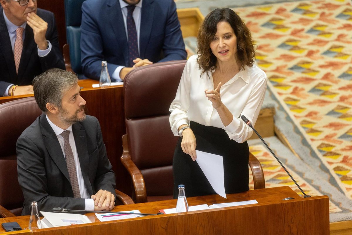 La presidenta de la Comunidad de Madrid, Isabel Díaz Ayuso, interviene durante un pleno en la Asamblea de Madrid, a 2 de octubre de 2025, en Madrid (España). - Ananda Manjón - Europa Press
