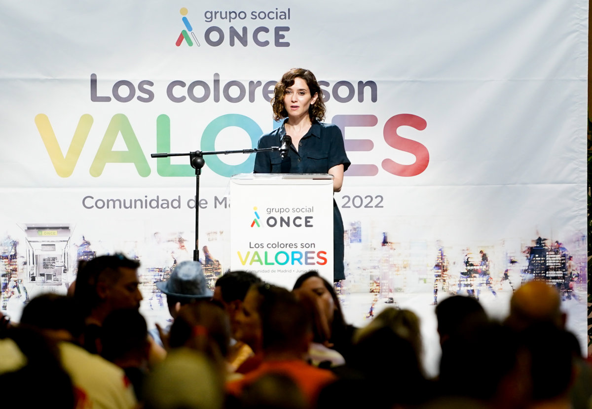 La presidenta regional ha felicitado al Grupo Social ONCE por la labor que realiza desde hace 84 años en favor del colectivo de personas ciegas o con deficiencia visual grave y ha asegurado que, desde la Comunidad de Madrid, se seguirá "trabajando para seguir siendo esa región sin barreras, abierta, plural y libre, que apuesta por la persona, protege la infancia, da apoyo a las personas con discapacidad, y cuida a sus mayores".