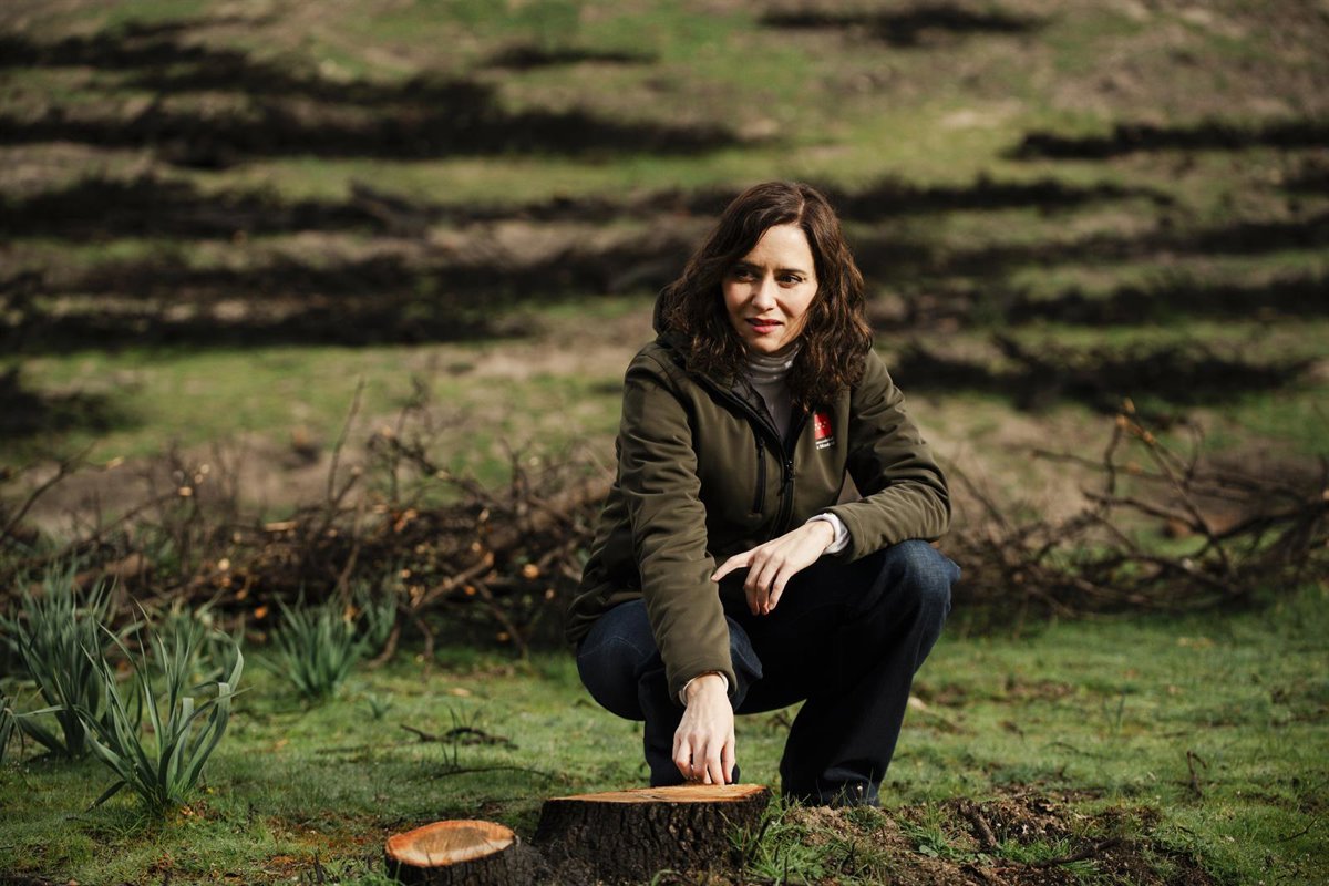 La presidenta de la Comunidad de Madrid, Isabel Díaz Ayuso, durante una visita a los terrenos del Monte de Utilidad Pública de Viñuelas, a 18 de marzo de 2026, en Tres Cantos, Madrid (España). - Mateo Lanzuela - Europa Press