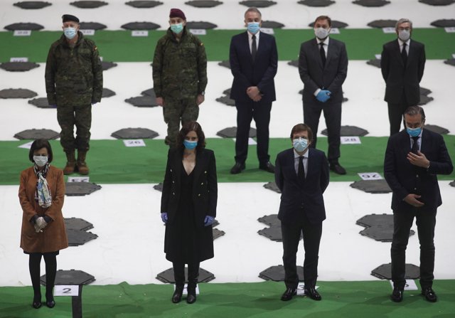 El acto ha comenzado con un minuto de silencio en memoria y tributo a las víctimas a causa de la pandemia. Díaz Ayuso ha estado acompañada por la ministra de Defensa, Margarita Robles, y el alcalde de Madrid, José Luis Martínez-Almeida.