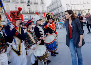 La presidenta de la Comunidad de Madrid, Isabel Díaz Ayuso, ha asistido hoy en la Puerta del Sol a la recreación histórica de la defensa del cuartel de Monteleón, episodio que formó parte del Levantamiento del 2 de