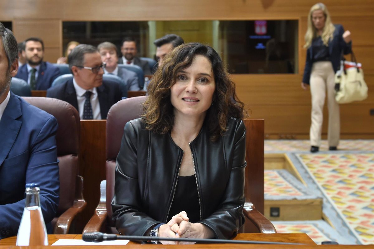 La presidenta de la Comunidad de Madrid, Isabel Díaz Ayuso, durante un pleno de la Asamblea de Madrid, a 14 de mayo de 2025, en Madrid (España). - Gustavo Valiente - Europa Press