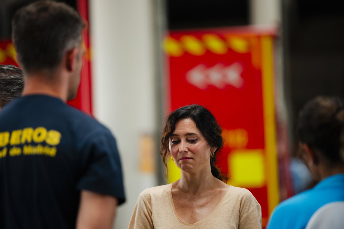 La presidenta de la Comunidad de Madrid, Isabel Díaz Ayuso, durante su visita al Parque Central de Bomberos, a 17 de agosto de 2025, en Las Rozas, Madrid (España). - Mateo Lanzuela - Europa Press