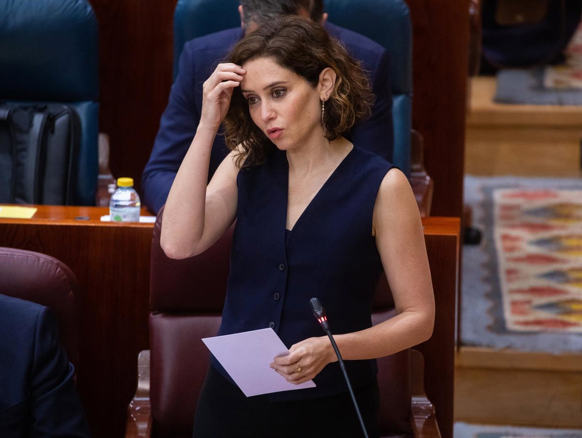 La presidenta de la Comunidad de Madrid, Isabel Díaz Ayuso, interviene durante un pleno en la Asamblea de Madrid. - Isabel Infantes - Europa Press