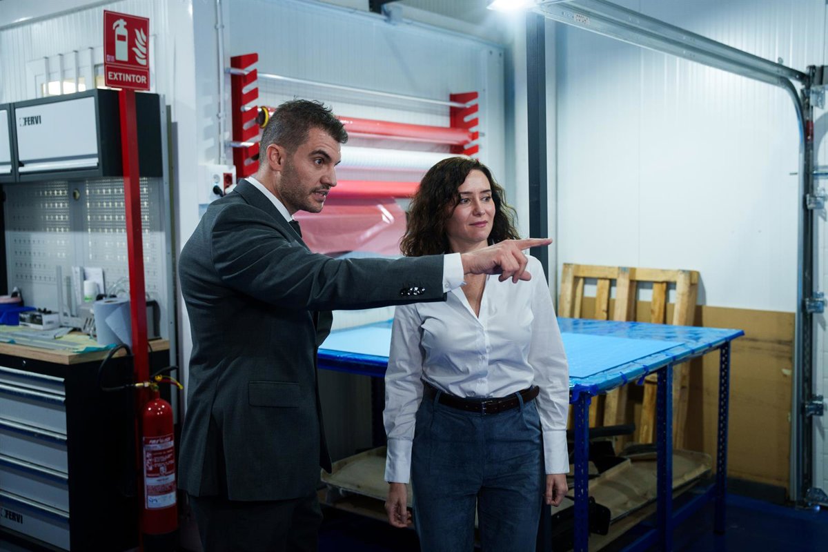 La presidenta de la Comunidad de Madrid, Isabel Díaz Ayuso, y el director de Operación de ETRAIR, Rafael García, durante una visita a ETRAIR, a 10 de febrero de 2026, en Madrid (España). La estrategia se presenta para apoyar a esta industria, con especial - Matias Chiofalo - Europa Press
