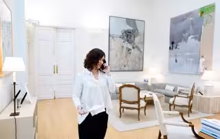 La presidenta de la Comunidad de Madrid, Isabel Díaz Ayuso, habla por teléfono en su despacho de la Real Casa de Correos - Comunidad de Madrid - Archivo