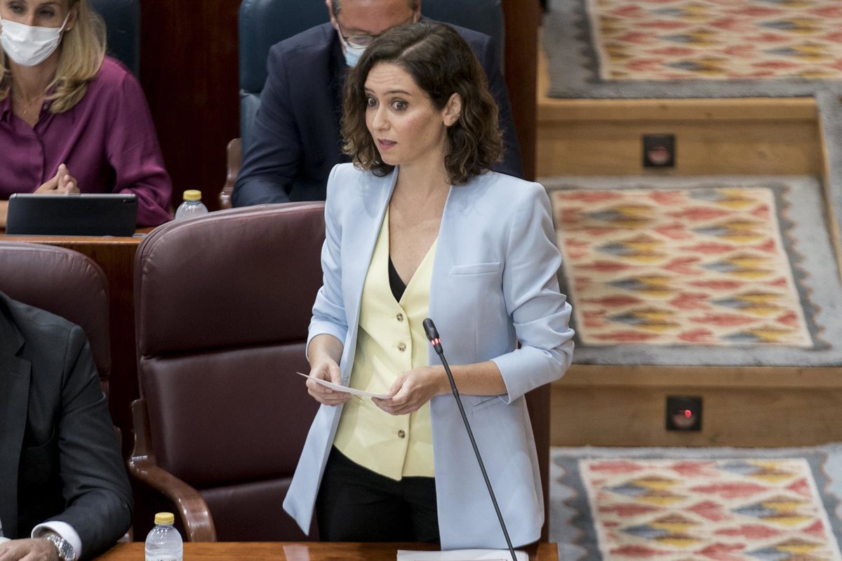 La presidenta de la Comunidad de Madrid, Isabel Díaz Ayuso, interviene en una sesión de control al Gobierno de la Comunidad de Madrid en la Asamblea de Madrid, a 16 de septiembre de 2021 - A. Pérez Meca - Europa Press