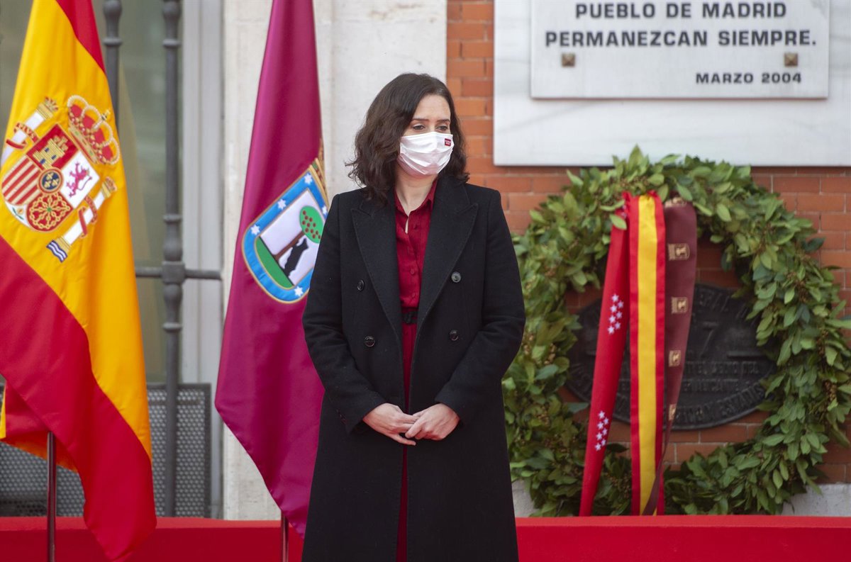 La presidenta de la Comunidad de Madrid, Isabel Díaz Ayuso, durante el acto homenaje a las víctimas de los atentados del 11N - Alberto Ortega - Europa Press