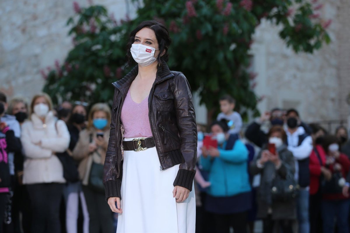 La presidenta de la Comunidad de Madrid y candidata del PP a la reelección, Isabel Díaz Ayuso durante un mitin en la Plaza de la Constitución, a 16 de abril de 2021, en Arganda del Rey - Isabel Infantes - Europa Press
