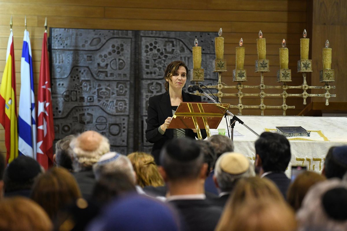 La presidenta de la Comunidad de Madrid, Isabel Díaz Ayuso, interviene en el solemne acto celebrado en memoria de las víctimas de los ataques terroristas sufridos por Israel, en la Sinagoga Beth Yaacov, a 10 de octubre de 2023, en Madrid (España). La Co - Fernando Sánchez - Europa Press