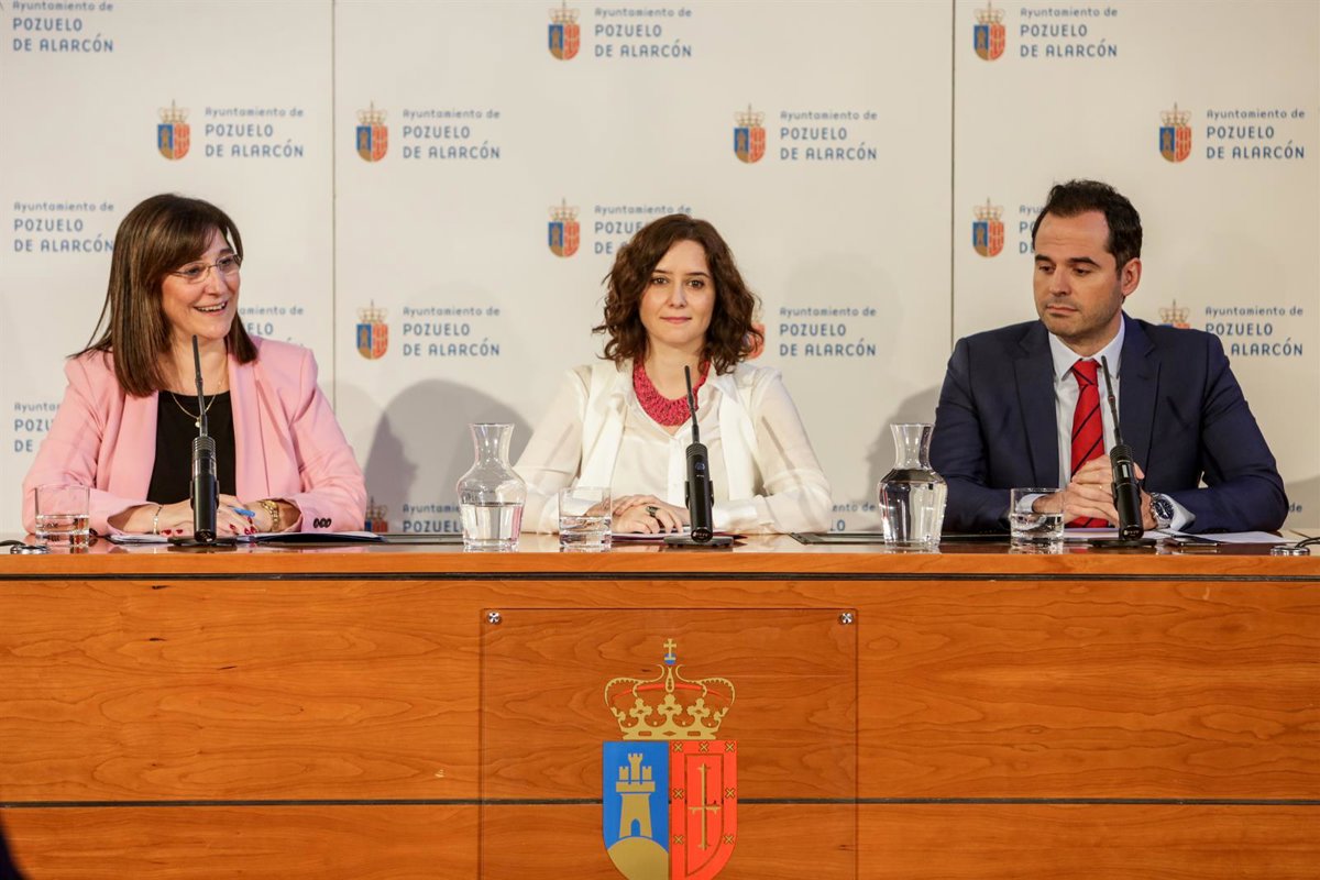 (I-D) La alcaldesa de Pozuelo de Alarcón, Susana Pérez Quislant; la presidenta de la Comunidad de Madrid, Isabel Díaz Ayuso y el vicepresidente de la Comunidad de Madrid, Ignacio Aguado durante la reunión del Consejo de Gobierno de la Comunidad de Madri - Ricardo Rubio - Europa Press