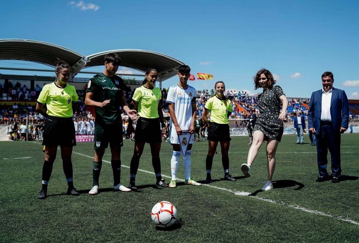 La presidenta de la Comunidad de Madrid, Isabel Díaz Ayuso, ha recogido este domingo el galardón del VI Torneo de Fútbol Cadete Vicente del Bosque en reconocimiento a su apoyo al deporte en la región y a esta competición.