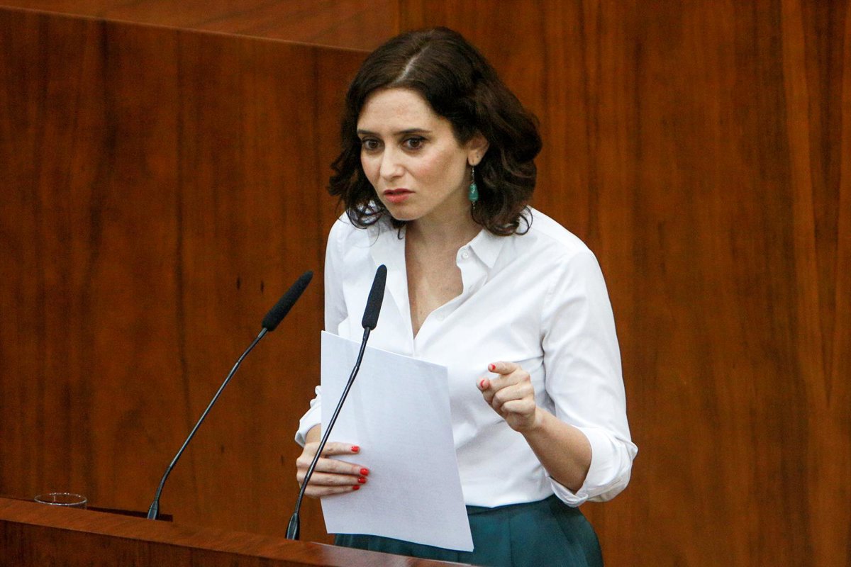 La candidata del PP a la Presidencia de la Comunidad de Madrid, Isabel Díaz Ayuso, da la réplica a las intervenciones de las diputadas de Unidas Podemos Izquierda Unida Madrid en Pie durante el debate del segundo pleno de su investidura. - Ricardo Rubio - Europa Press