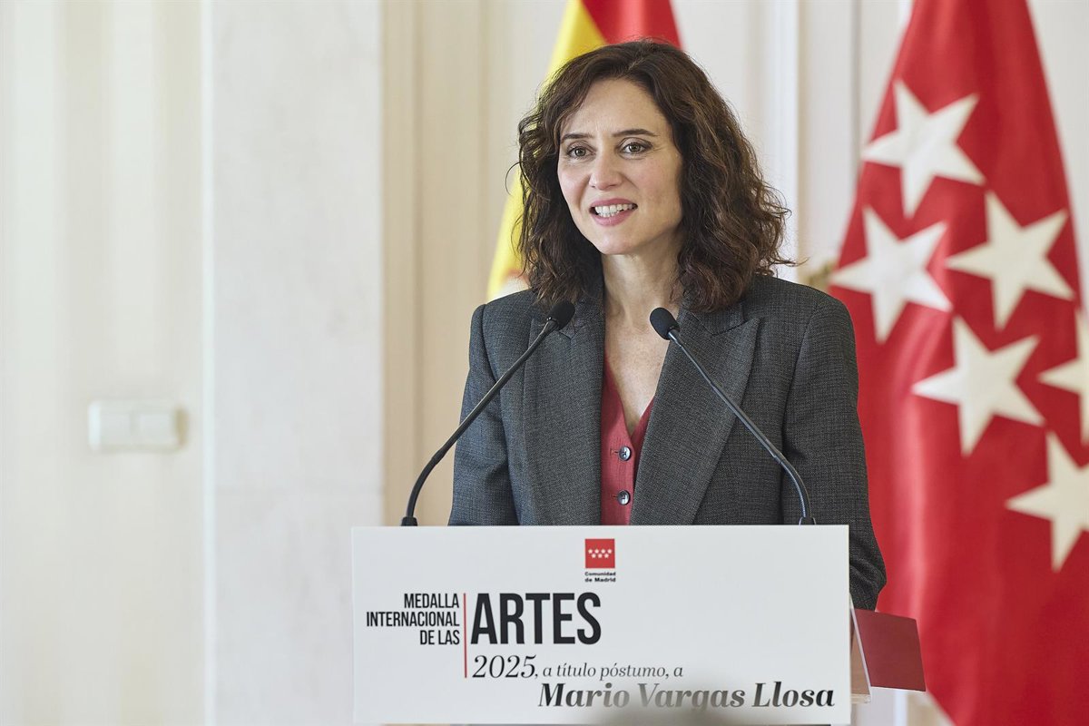 La presidenta de la Comunidad de Madrid, Isabel Díaz Ayuso, entrega la Medalla Internacional de las Artes, a título póstumo, a Mario Vargas Llosa, a 13 de abril de 2026, en Madrid (España). - Jesús Hellín - Europa Press