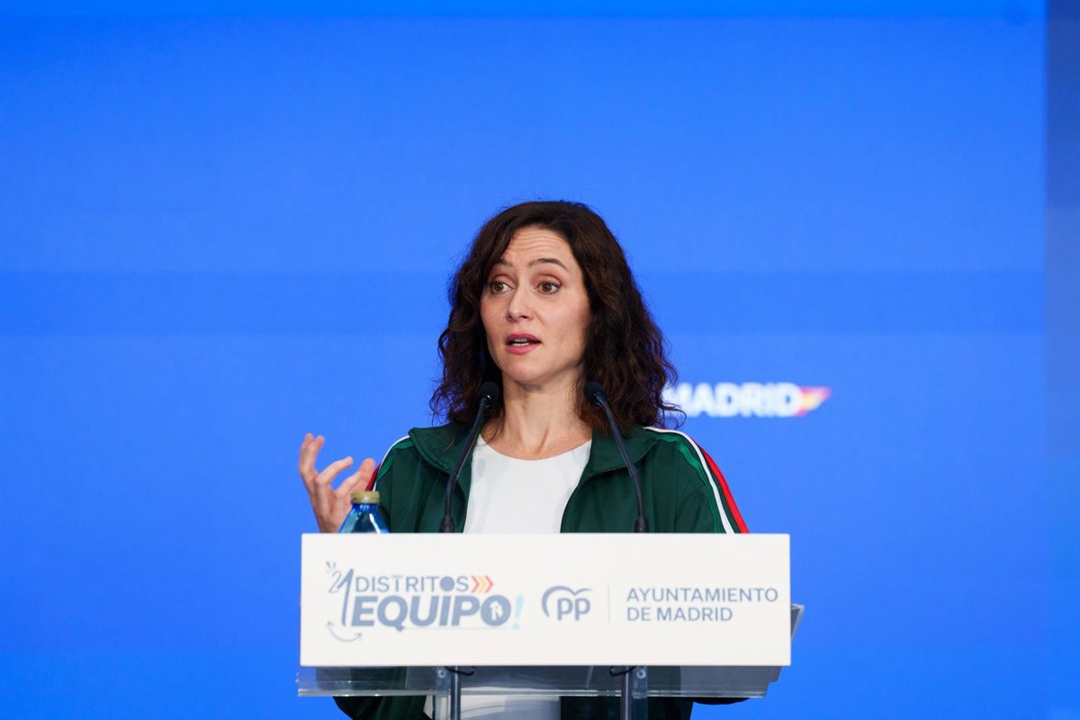 La presidenta de la Comunidad de Madrid y del PP de Madrid, Isabel Díaz Ayuso, durante su participación en la Jornada Entre Distritos del PP de Madrid, en los Viveros de Empresas de Carabanchel, a 25 de abril de 2026, en Madrid (España). - Matias Chiofalo - Europa Press