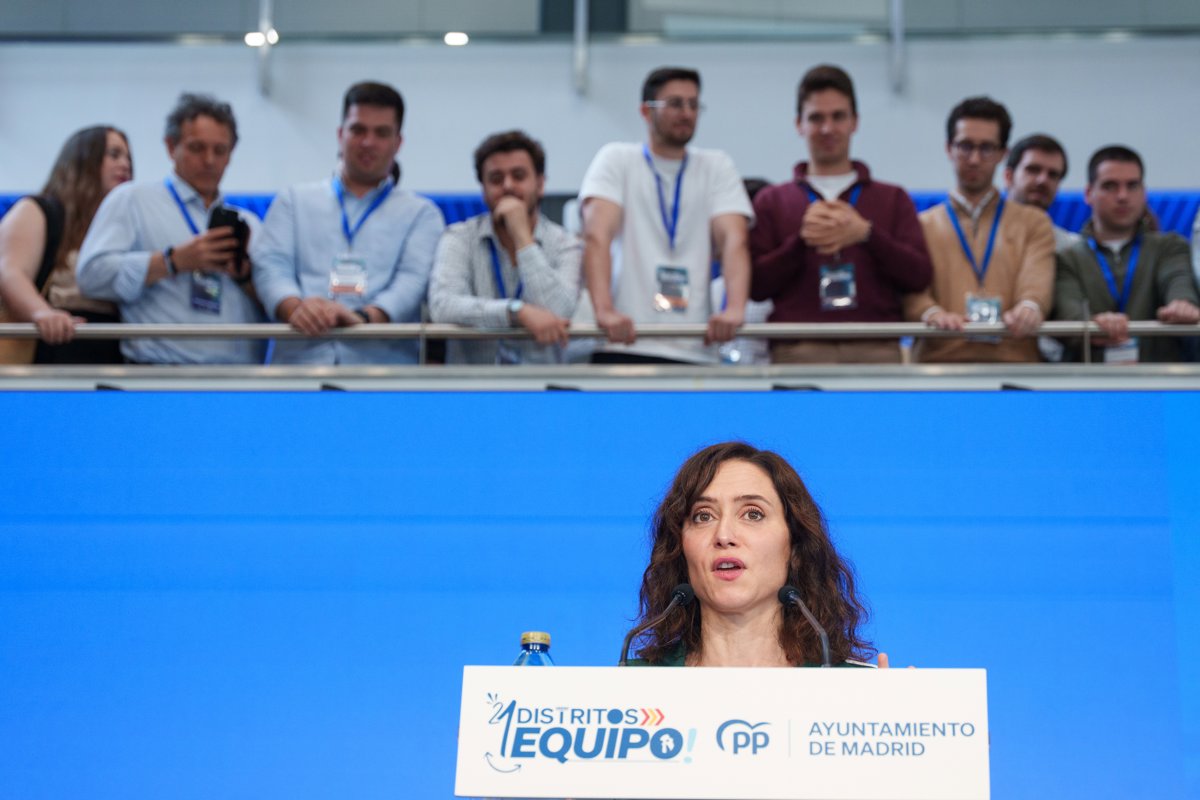 La presidenta de la Comunidad de Madrid y del PP de Madrid, Isabel Díaz Ayuso, durante su participación en la Jornada Entre Distritos del PP de Madrid, en los Viveros de Empresas de Carabanchel, a 25 de abril de 2026, en Madrid (España). - Matias Chiofalo - Europa Press