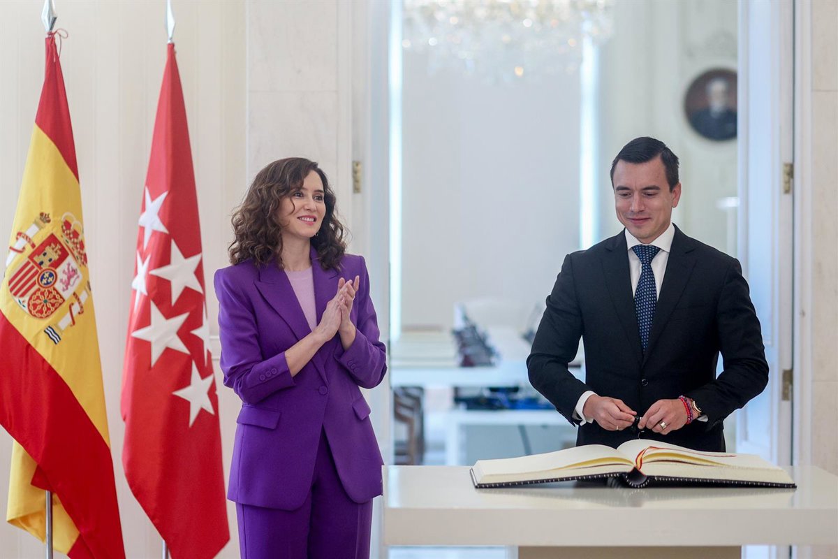 Díaz Ayuso aprovechará su viaje institucional para mostrar, como ya ha hecho en ocasiones anteriores, su apoyo al presidente de la República, Daniel Noboa, inmerso en la segunda vuelta de las elecciones de este país, que se celebran el próximo 12 de abril.