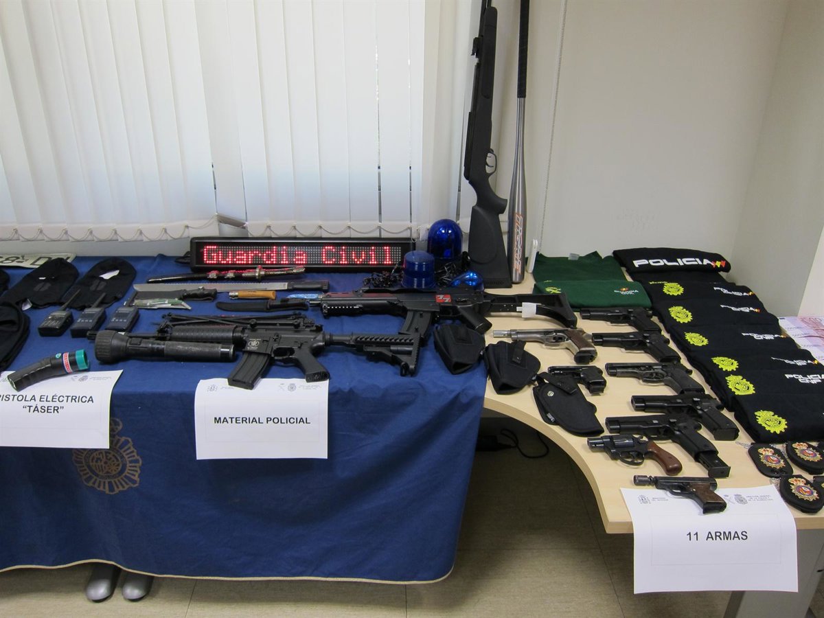 En los registros se han intervenido catorce armas de fuego simuladas y reales, ocho placas similares a las utilizadas por las FSE, así como vestimenta con los anagramas de ambos cuerpos policiales y lanza destellos parecidos a los empleados por los agentes. Además, se han incautado umúltiples herramientas para hacer butrones. También se han aprehendido cerca de 200.000 euros en efectivo y 100 vehículos de alta gama.