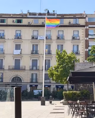 Esta plaza, que fue renombrada en honor al activista y político socialistas impulsor del matrimonio igualitario, es un referente en el barrio LGTBI de la capital, donde se celebra el pregón para el Orgullo y diversos conciertos.