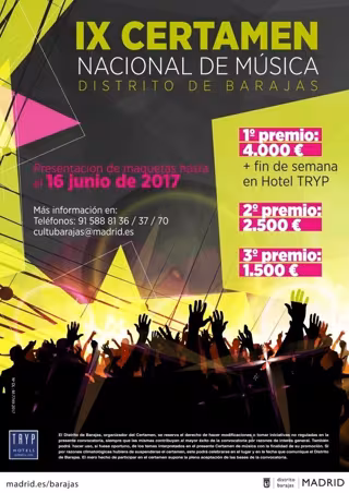 El Ayuntamiento ha convocado la novena edición del Certamen Nacional de Música del Distrito de Barajas, un concurso que pretende descubrir nuevos talentos musicales y contribuir a la difusión de la cultura musical.