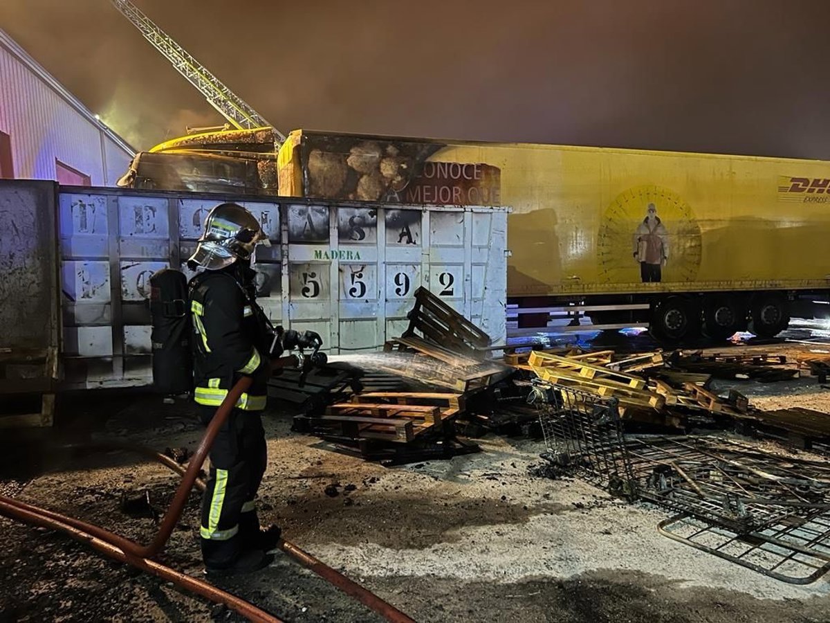 Se ha visto afectado un contenedor exterior a la nave repleto de palés de madera, una cabeza caja tractora de un camión y un remolque que se situaba al lado del contenedor. Pese a que no ha habido ningún herido ni intoxicado, el SUMMA 112 desplazó un dispositivo sanitario en preventivo.