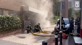 Un total de nueve dotaciones de Bomberos de Madrid han extinguido este sábado un incendio declarado en un cuarto de contadores en un edificio de trece plantas de la calle Sanxenxo, en el distrito madrileño de Fuencarral.