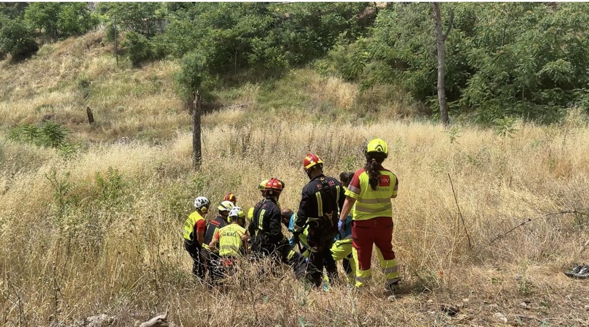 Bomberos rescatan a ciclista en estado grave tras caer por un terraplén de 20 metros de desnivel en Valdilecha, Madrid, el 22 de junio de 2025. - SUMMA 112