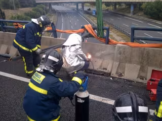 Bomberos del Ayuntamiento de Madrid se encuentran trabajando este domingo para retirar un bloque de un puente que une la M-40 con la M-11 por riesgo de desprendimientos, han informado a Europa Press fuentes de Emergencias Madrid.