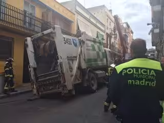 Bomberos del Ayuntamiento de Madrid han tenido que retirar de una calle de Punte de Vallecas un camión de basura atrapado en un socavón, ha informado este jueves a Europa Press un portavoz de Emergencias Madrid.