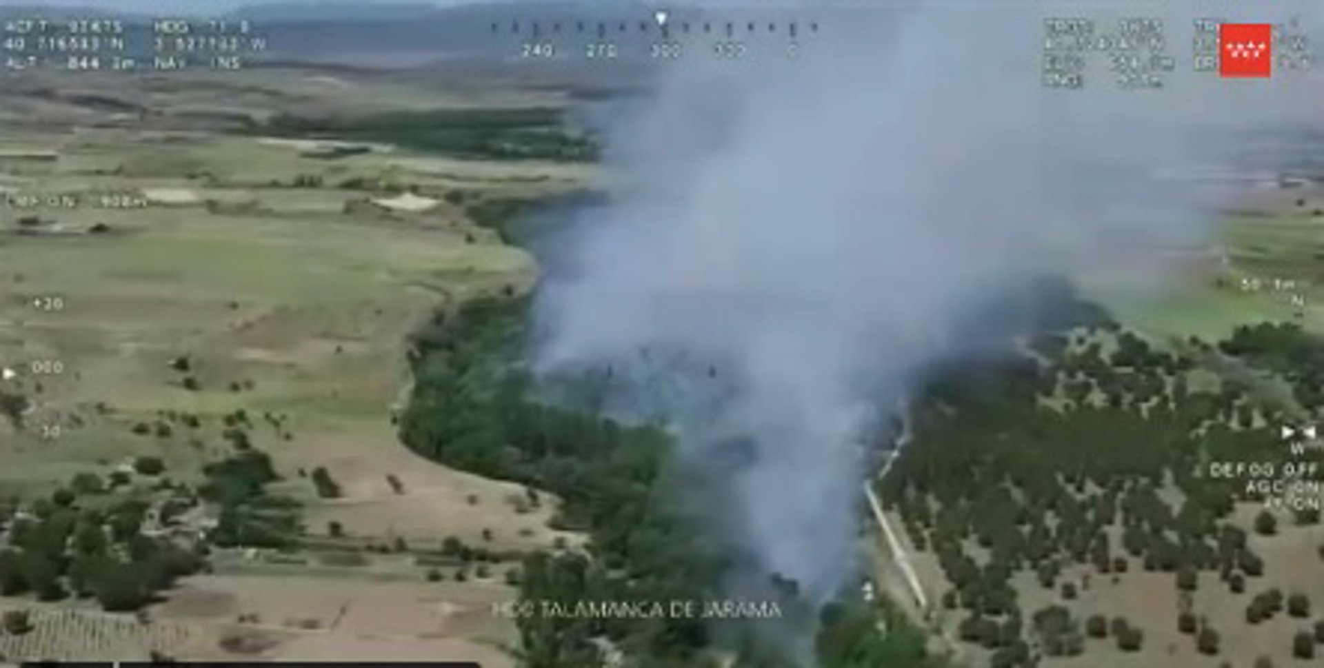 Un total de 12 dotaciones de Bomberos de la Comunidad, tres de ellas aéreas y nueve terrestres, están trabajando esta tarde en la extinción definitiva de un incendio en la localidad de Talamanca del Jarama, ha informado a Europa Press un portavoz de Emergencias 112.