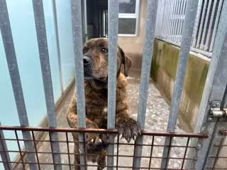Tanqueray, que tiene casi 11 años, figura en su ficha como un perro sociable y cariñoso que cambia su expresión cuando sale del chenil, mientras que a escasos metros se encuentra Vegeta, una perra marrón que se sube a los barrotes con una mirada que sus cuidadoras describen como tan dulce que cuesta entender que nadie se haya fijado en ella.