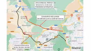 Según ha precisado Mitma en un comunicado, durante las próximas dos semanas se efectuará la rehabilitación del carril BUS-VAO por ello se cortará el tráfico entre la medianoche del lunes 4 de julio (noche del domingo 3 de julio) y las 12 horas del viernes 8 de julio.