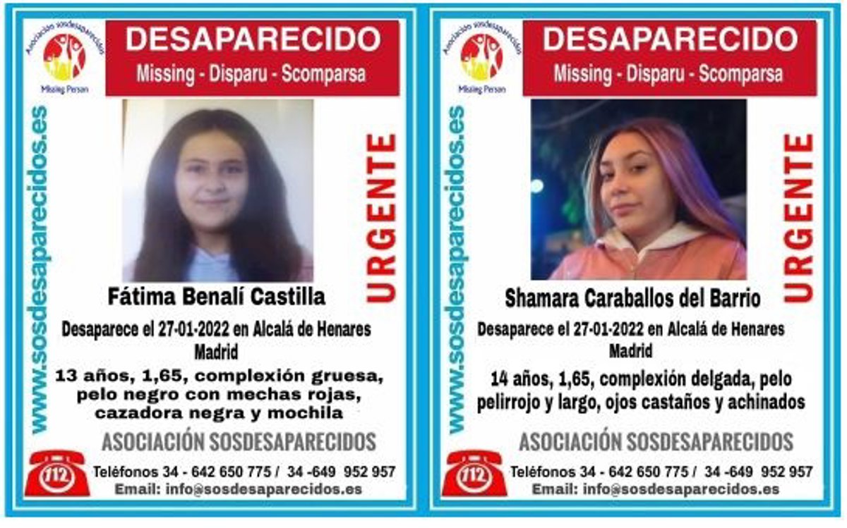 La Policía, así como familiares, amigos y compañeros buscan a dos chicas, una de 13 y otra de 14 años, que desaparecieron al salir juntas ayer jueves de clase de un instituto de Alcalá de Henares, ha informado a Europa Press un portavoz de la asociación SOS Desaparecidos.