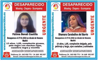 Por tanto, la asociación pide colaboración ciudadana para encontrar a Fátima Benalí Castilla, de 13 años. Mide 1,65 metros, tiene complexión gruesa, pelo negro con mechas rojas y ayer iba con una cazadora negra y mochila. La otra chica se llama Shamara Caraballos del Río, de 14 años. Tiene el pelo rojo y largo, ojos castaños y achinados y su complexión es normal.