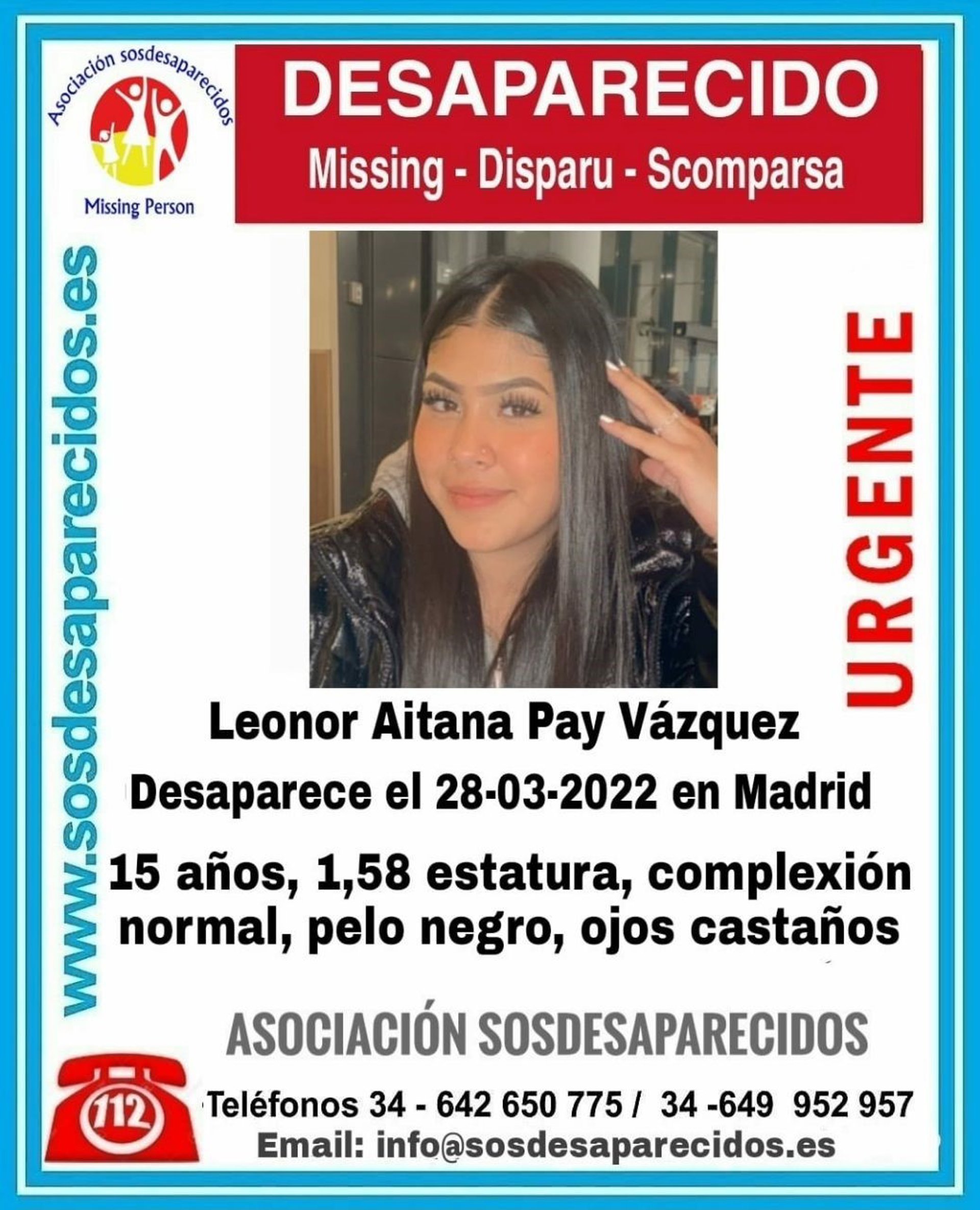 Familiares, amigos, compañeros y Fuerzas de Seguridad buscan a un chica de 15 años desaparecida el pasado 28 de marzo en Madrid, ha informado la asociación SOS Desaparecidos.