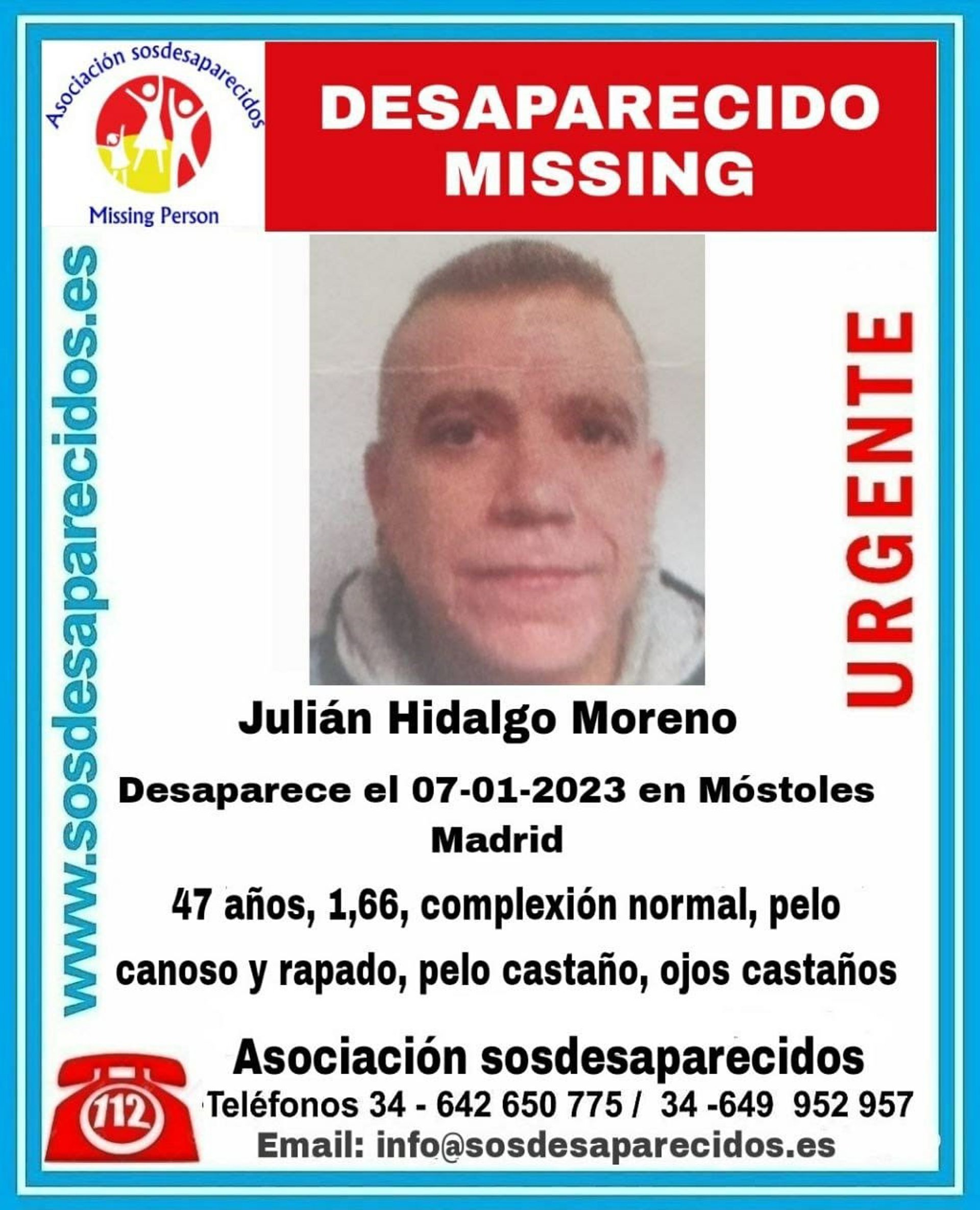 Familiares, amigos y Fuerzas y Cuerpos de Seguridad buscan a un hombre de 47 años que fue visto por última vez el sábado 7 de enero en la localidad de Móstoles, ha informado hoy miércoles la asociación SOS Desaparecidos.