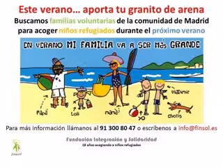 El programa se viene desarrollando desde 1996, y cuenta con la supervisión de la Comunidad de Madrid. Las familias interesadas pueden contactar con la Fundación Integración y Solidaridad en el teléfono 91 300 80 47 o a través del correo electrónico info@finsol.es. El plazo de admisión de solicitudes termina en febrero.