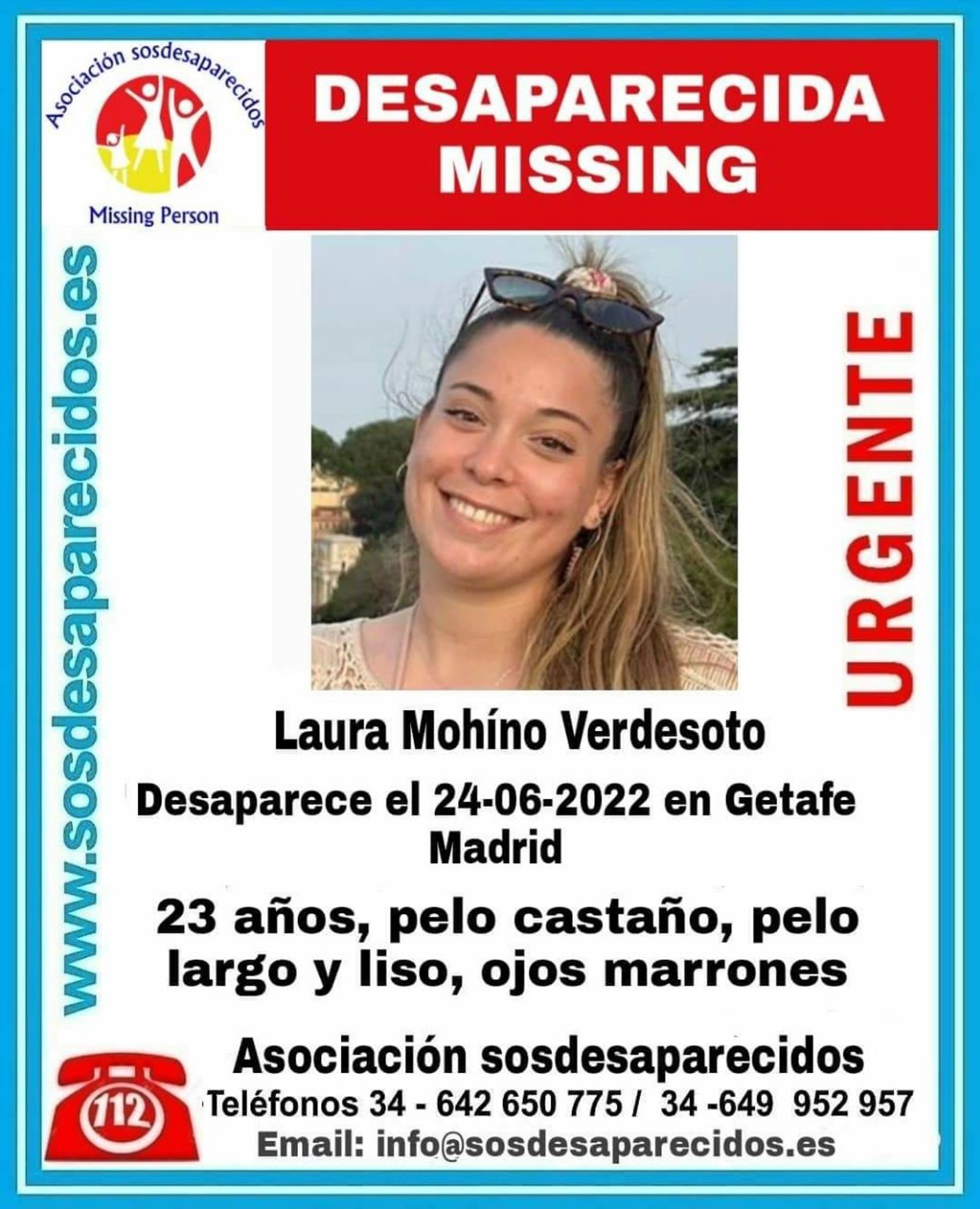 Familiares, amigos y compañeros buscan desde el pasado viernes a Laura Mohíno Verdesoto, de 23 años de edad, cuyo rastro se perdió ese día en la localidad de Getafe, ha informado la asociación SOS Desaparecidos.