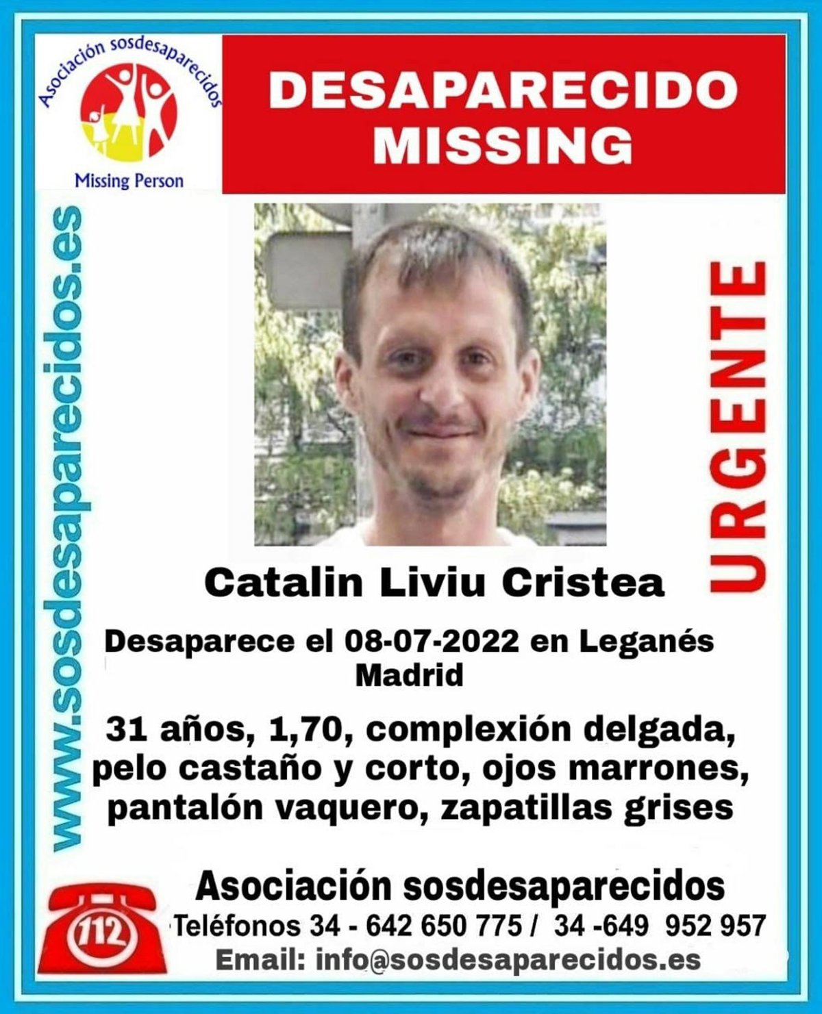 Familiares, amigos y compañeros buscan desde hace días a Catalin Liviu Cristea, un joven de 31 años desaparecido el pasado viernes de su localidad de Leganés y del que nada se sabe, ha informado el Centro Nacional de Desaparecidos y la asociación SOS Desaparecidos.