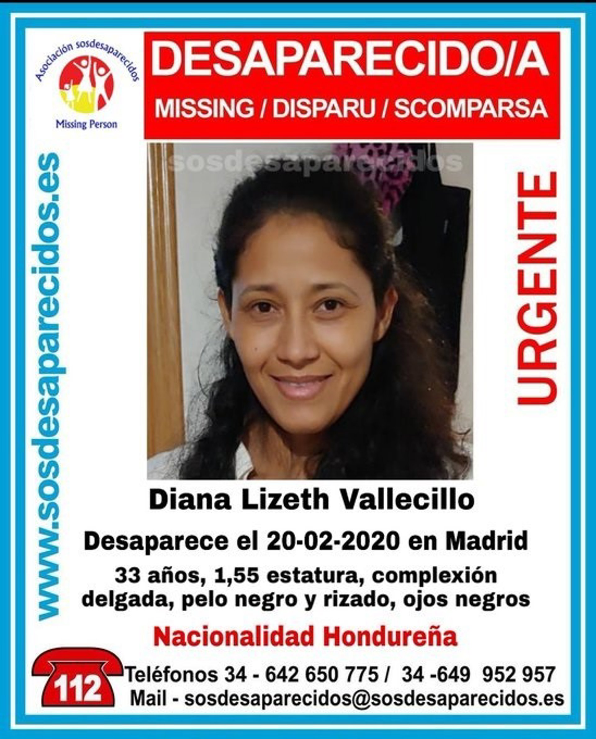La asociación SOS Desaparecidos ha solicitado la colaboración ciudadana a través de sus redes sociales para localizar a Diana Lizeth Vallecillo, una mujer hondureña de 33 años desaparecida en Madrid el pasado 20 de febrero.
